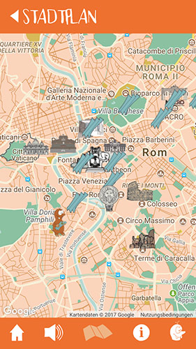 Die dazugehörige App «Der sprechende Stadtplan – Rom» verleiht dem Plan eine Stimme und erzählt Spannendes über Rom.